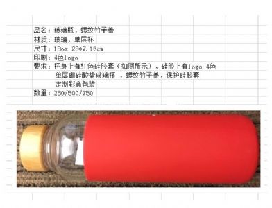 玻璃杯帶硅膠套,木質(zhì)蓋子