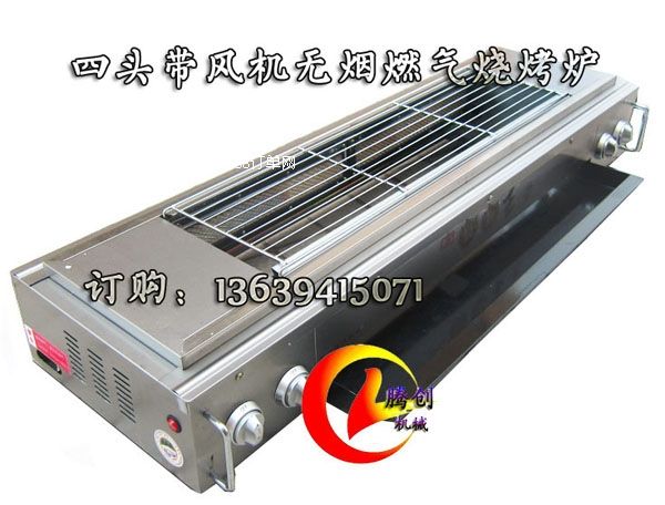 帶風(fēng)機無煙燃氣燒烤爐,不銹鋼四頭燒烤爐