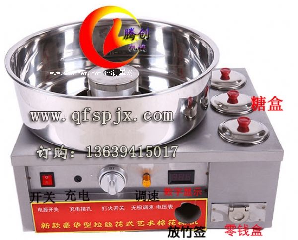 不銹鋼彩色電動花式棉花糖機帶電瓶充電器,花樣棉花糖機
