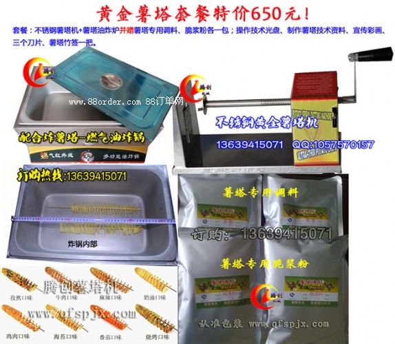 手搖旋轉(zhuǎn)薯塔機,旋轉(zhuǎn)切土豆機和薯塔油炸爐全套,龍卷風(fēng)土豆機
