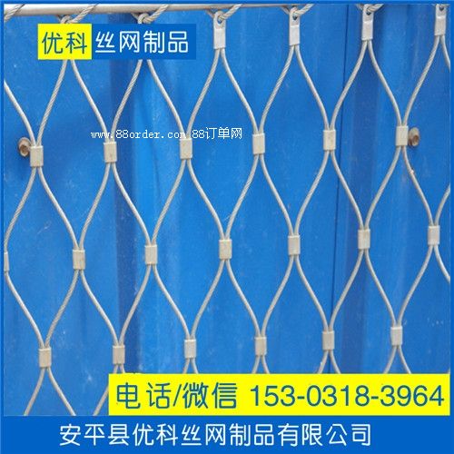安平縣優(yōu)科絲網(wǎng)制品有限公司專業(yè)生產(chǎn)各種規(guī)格的不銹鋼繩網(wǎng)。不銹鋼繩網(wǎng),不銹鋼扣網(wǎng),卡扣不銹鋼,動物籠舍專用不銹鋼繩網(wǎng),植物攀爬用不銹鋼絲,樓梯防護(hù)網(wǎng),橋梁防護(hù)網(wǎng)。