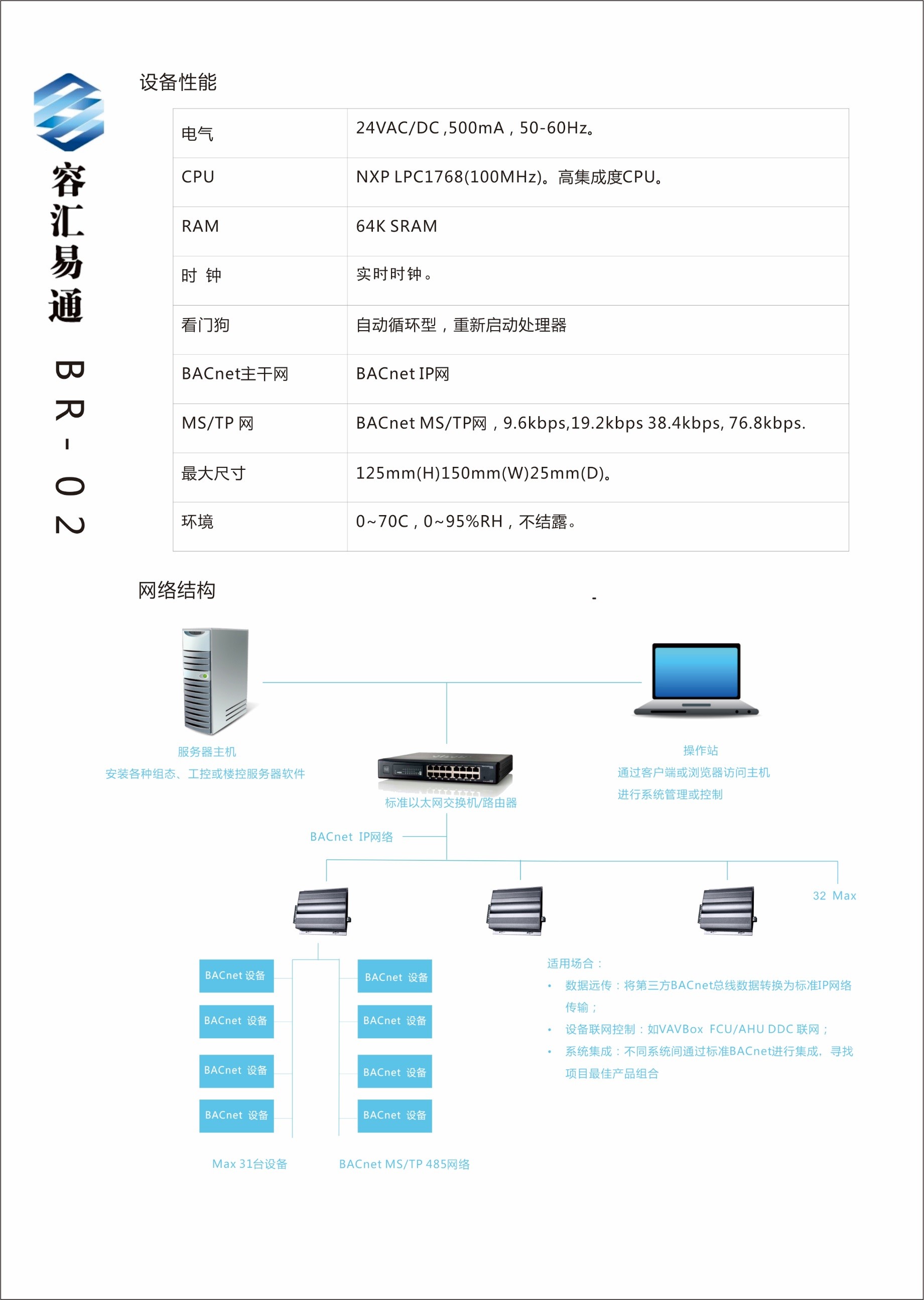 · 能力 與bacnet 完全兼容,管理多路bacnet網(wǎng)的路由,包括以太網(wǎng)(ethernet)或ip網(wǎng)絡(luò)、和ms/tp網(wǎng)連接。