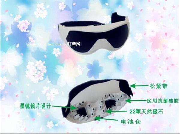 該款眼保儀是國內(nèi)首創(chuàng)的大眾化普及型新奇護眼產(chǎn)品,它根據(jù)中醫(yī)經(jīng)絡(luò)學(xué)說,通過22顆釹磁同時按摩眼部穴位,刺激和鍛煉視椎細(xì)胞和視神經(jīng),緩解睫狀肌疲勞及長時間用眼造成的眼睛干澀和疼痛,調(diào)和氣血,促進(jìn)新陳代謝。獨特的針孔狀透片可矯正焦點,護目養(yǎng)神,加強眼部細(xì)胞組織自然自愈能力,在防止近視、弱視等眼睛疾病加深的同時,還有美容眼部的功效。產(chǎn)品采用眼鏡式造型,佩戴舒適,三種按摩力度隨意調(diào)節(jié),自動定時控制,外觀時尚,顏色靚麗,是學(xué)生和女士絕佳的眼睛保健按摩小護士,也是饋贈好友的時尚禮品和促銷品。