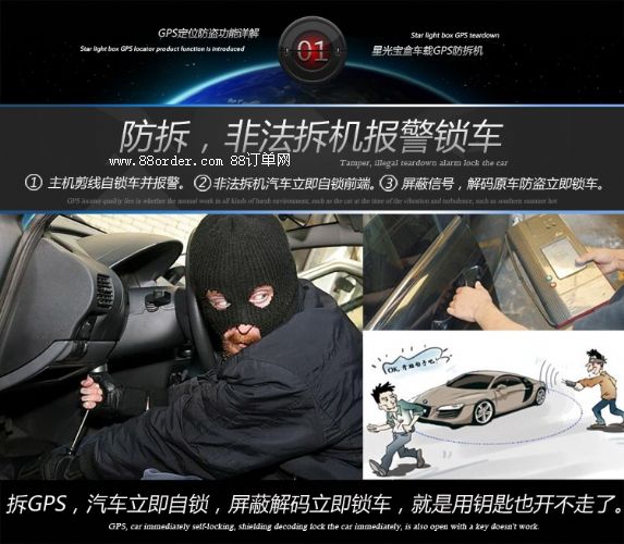 拆除gps定位設備,gps報警到車主手機與平臺,并自鎖汽車斷油電路,有原車鑰匙也開不走。