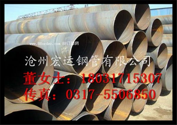滄州宏運(yùn)鋼管有限公司直供雙面埋弧焊螺旋鋼管:直徑219-3620mm,壁厚6-30mm,執(zhí)行標(biāo)準(zhǔn):gb/t9711.1 9711.2 sy/t5037 5040 aptspec 5l。