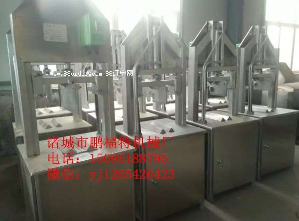 4、留豬腦型分割機(jī)把豬腦殼下顎朝上,刀缺口對準(zhǔn)腦部,用刀下分割,留出腦部位,方可使豬腦成型完整。
