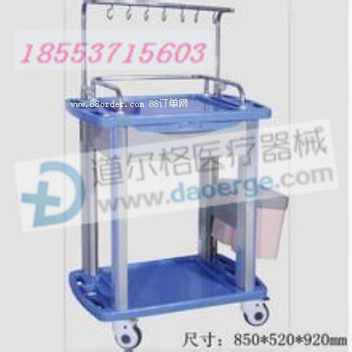 *整車由上下主板、立柱、抽屜、不銹鋼護欄、豪華腳輪(兩個帶剎車裝置)及防撞緩沖結(jié)構(gòu)設(shè)計,可拆卸垃圾桶,帶輸液架、瓶架掛鉤。