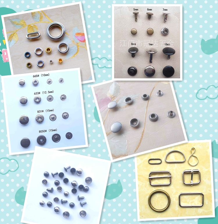 主要產(chǎn)品包括:線扣(方扣、拉芯扣、d扣、針通扣、圓圈)、雞眼、撞釘、蘑菇釘、腳釘、爪釘、急鈕、四合扣、五爪鈕、狗扣、磁鈕、匙圈、壓鑄標(biāo)牌、五金沖壓件、等。產(chǎn)品規(guī)格齊全,款式多樣?蛻艨梢蕴峁悠坊驁D紙定做各類沖壓件,壓鑄件。