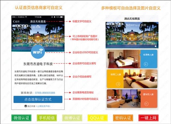 科思達提供:賓館wifi方案、酒店wifi解決方案、酒店無線覆蓋方案、酒店wifi覆蓋方案、賓館無線覆蓋方案,提供穩(wěn)定wifi營銷系統(tǒng)。隨著智能手機和移動平板電腦的普及,向顧客提供免費wifi已經(jīng)成為酒店行業(yè)評價服務(wù)層次的新標準,提供更多的微信營銷成功案例。