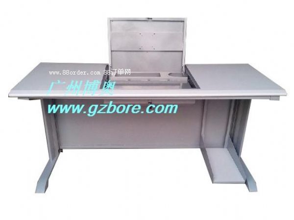 結(jié) 構(gòu):使用時(shí)只要打開鎖,液晶顯示屏便會(huì)自動(dòng)翻起,鍵盤也同時(shí)自動(dòng)打開。當(dāng)不使用時(shí),可用手動(dòng)按下翻蓋面板。整個(gè)翻轉(zhuǎn)器與桌面齊平,產(chǎn)品具有防塵保持桌面平整,美化桌面等功能。電腦主機(jī)位置有鎖上,可防盜,