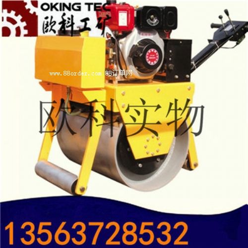 【手扶式單鋼輪壓路機技術(shù)參數(shù)】型號ok-600ok-600功率9hp178f行走速度4kw/h4km/h行走方式雙向雙向激振頻率70hz70hz激振力20kn20kn爬坡能力25%25%重量280kg280kg【單鋼輪小型壓路機概述】:電啟動單輪壓路機用于壓實瀝青表面,壓實礫石、沙土等工程基礎(chǔ),碾壓草坪。