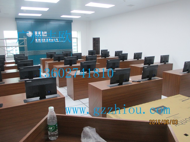 結(jié) 構(gòu):每張桌子配置2臺(tái)電動(dòng)遙控液晶升降機(jī)(當(dāng)時(shí)電腦時(shí)液晶顯示器自動(dòng)重桌底升起且顯示器自動(dòng)通電,當(dāng)不使用顯示器時(shí),顯示器自動(dòng)隱藏于桌底),每一個(gè)位置都有一個(gè)電腦主機(jī)位,電腦桌前面設(shè)有檢修門(mén),方便線路維修。