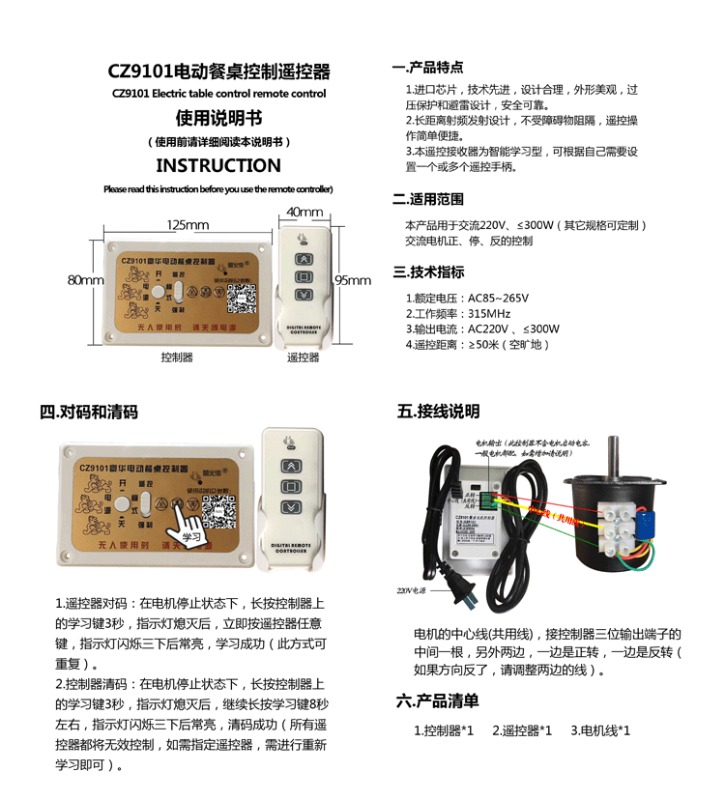 CZ9101調(diào)速餐桌遙控器餐桌控制器電機(jī)控制器帶