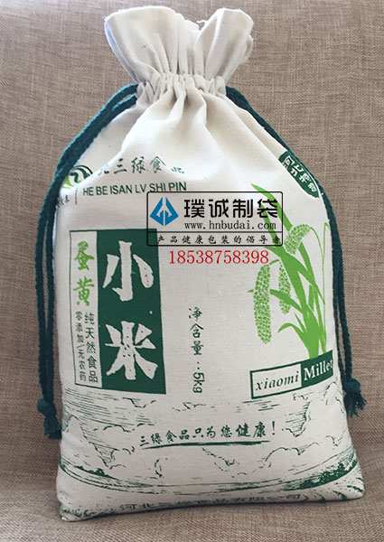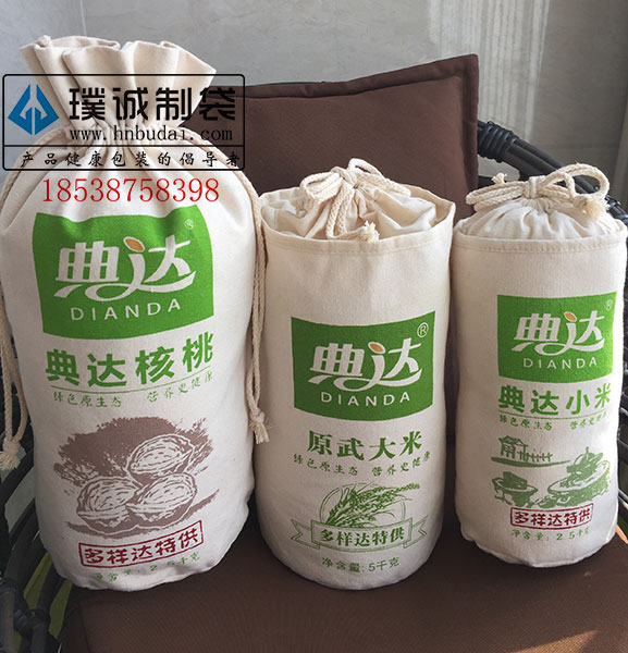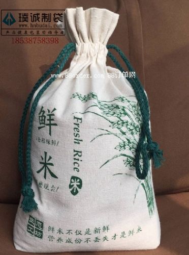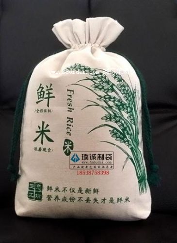 這款大米袋,采用老粗布作為材質(zhì),給人一種懷念的感覺。底部采用捏角工藝,便于袋子的站立,布料結(jié)實耐用,成本不高,