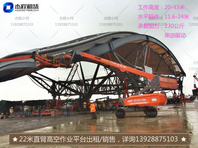 2、24米直臂高空車(chē):平臺(tái)高度22.15米,工作高度24.15米,水平延伸16.23米,承載230公斤;