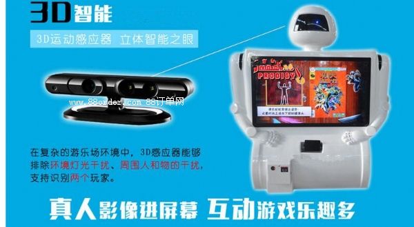 兒童樂(lè)園的設(shè)備,功夫機(jī)器人,由本公司自主研發(fā)設(shè)計(jì),全新的體感互動(dòng)游戲,可愛(ài)的外形設(shè)計(jì),在眼就能吸引小朋友的目光,依靠全新的捕捉投影技術(shù),可以將玩家的影像動(dòng)作直接同步到游戲中,使玩家自己化身游戲的主角,更有功夫,運(yùn)動(dòng),舞蹈等多種休閑健康有趣的游戲選擇,在玩家進(jìn)行游戲的所帶動(dòng)的宣傳效應(yīng)更是不可忽視,經(jīng)常形成一人玩多人等情形,不僅體感機(jī)器人自身能夠?yàn)槟鷰?lái)收入,更帶動(dòng)您樂(lè)園其他產(chǎn)品的收入!