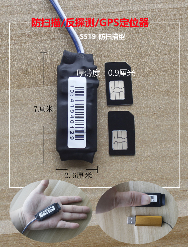 s519 -- 防掃描定位器,安裝位置沒有要求,可以隱藏于管線之中。在設置定時上報時,在開機上傳位置信息前會先檢測周圍是否有掃描儀信號,若是有掃描信號,就會繼續(xù)休眠,等到掃描信號撤掉后才會恢復正常上報。