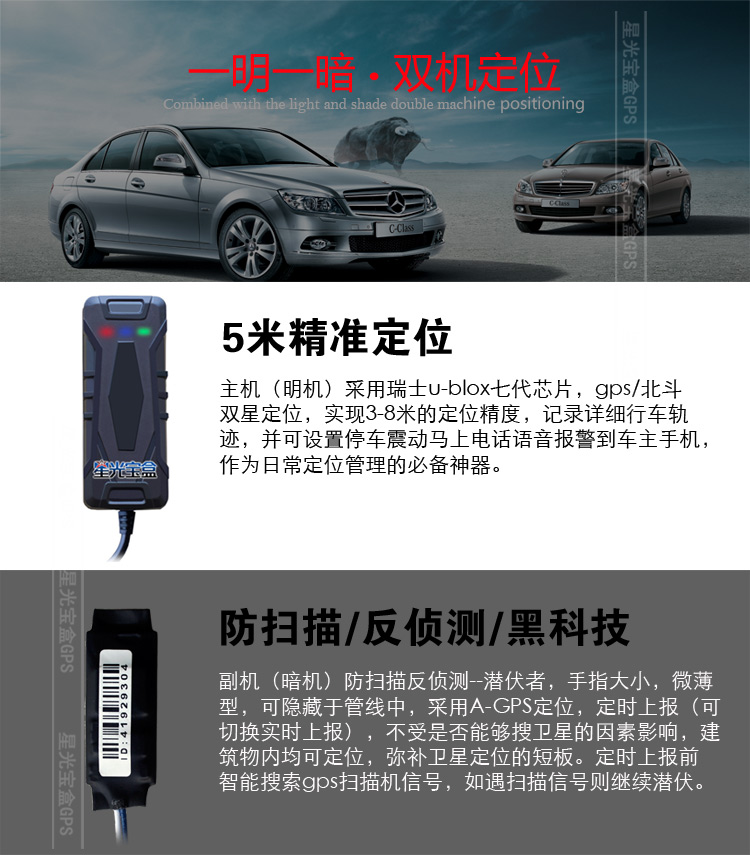 對于租賃車輛,車貸車輛的行業(yè)用戶來說,非常需要一個能夠更小投入,但有更高安全性的風控管理方案,隨著星光寶盒gps防掃描,反探測技術的全面市場應用,明暗組合套裝方案應運而生,并受到眾多行業(yè)用戶的熱捧。 明裝gps可用于車輛日常管理(相對于防掃描gps來說是明裝),此機要求定位精準,使用穩(wěn)定。暗裝的機器,則是一張底牌,必須能夠安裝的非常隱蔽,并且即使通過五花八門的探測設備都不能找到的好寶貝。這樣才是合格的風控管理神器。