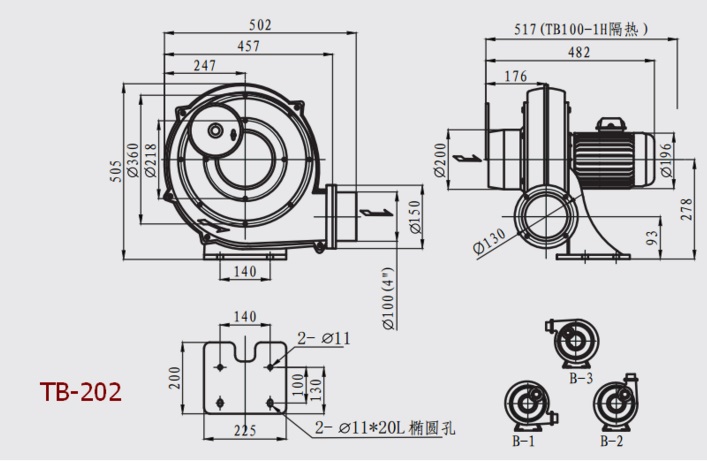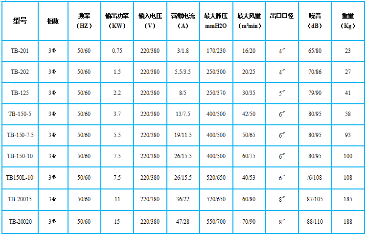 型號(hào):tb透浦式鼓風(fēng)機(jī)系列(tb-202)