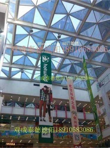 采用阻燃電線,防火漆油漆,使商場中庭遙控電動吊廣告升降條幅裝置有極高的防火性能,安全可靠。