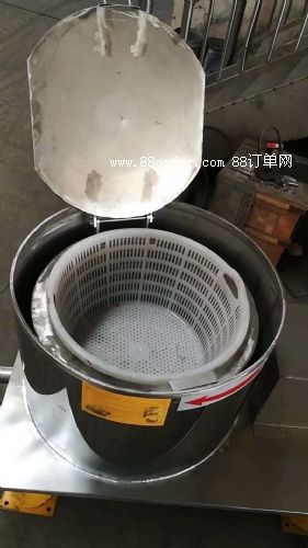 提籃式|吊籃式脫水機(適用于鐵屑五金等產(chǎn)品的提出自動卸料)本脫水機為三足懸擺式,可避免因轉(zhuǎn)鼓內(nèi)不平衡而在運轉(zhuǎn)時產(chǎn)生地腳振動。外殼和頂蓋系鋼板所制,底盤材料為鑄鐵,出水管在底盤下方,底腳座及柱腳材料均為鑄鐵。主軸采用優(yōu)質(zhì)鋼材所制,裝有多只軸承,下端用推力球軸承支持,以減少磨損,節(jié)省動力。轉(zhuǎn)鼓采用不銹鋼板鈕孔制成,籠底座為鑄鐵件,并襯有不銹鋼罩。轉(zhuǎn)鼓裝在主軸錐面上,以保證運轉(zhuǎn)平穩(wěn)。采用來獨立的電動機用過三角帶傳動,大規(guī)格的裝有離心式起步法蘭,可使機器緩步起動,其制動效率高,能使轉(zhuǎn)鼓迅速停止轉(zhuǎn)動,可避免主軸因制動而受到扭力。操作方法:1、將需脫水之物品均勻平整地裝入轉(zhuǎn)鼓內(nèi),注意平穩(wěn),切勿超載。2、工作時,開動電機,約經(jīng)90秒種,機器達到正常轉(zhuǎn)速,出水管開始出水。3、電動開動8-10分鐘,水管無水外流,即可切斷電源,機器停轉(zhuǎn)。4、剎車:正常情況下斷電1-2分鐘后間斷扳動制動手柄,即可停車。五、注意事項:1、操作者必須熟悉機器的結構、性能和操作方法。2、開車前先轉(zhuǎn)動鼓數(shù)轉(zhuǎn),以免裝載衣物不均勻和超載及其它故障。3、加料時應均勻分布,以免偏重振動。4、正常動轉(zhuǎn)時,切勿使用制動剎動裝置,以免損壞蘭令帶和其它零件。