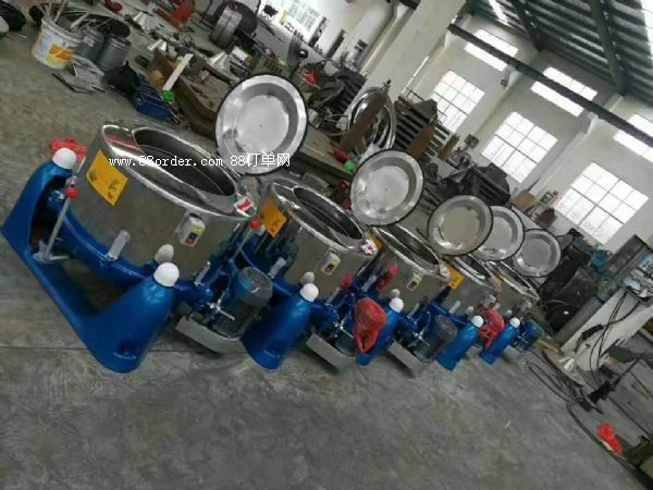物料由上部加入轉(zhuǎn)鼓,在離心力場的作用下,液相穿過過濾介質(zhì)排出機(jī)外,固相物截留在轉(zhuǎn)鼓內(nèi),停機(jī)后用吊具將攔液板和濾袋一同吊出,到指定地點(diǎn)卸料。具有啟動(dòng)平穩(wěn)、分離因數(shù)可調(diào)、容量大、效率高、操作簡便、卸料快捷、安全性能好、環(huán)境潔凈、勞動(dòng)強(qiáng)度低等特點(diǎn)。sd型離心機(jī)是在ss型三足式上部卸料離心機(jī)基礎(chǔ)上的改型產(chǎn)品。除保留了ss型離心機(jī)的優(yōu)點(diǎn)外,還明顯降低了勞動(dòng)強(qiáng)度,卸料快捷,便于清洗濾袋,提高了生產(chǎn)效率,避免了因人工卸料造成對成品的污染和拋散。適合于分離含固相松散度高、粒度適中、不易壓縮、需要洗滌、液相粘度較小的懸浮液。廣泛用于化工、制藥、食品、輕工、采礦、環(huán)保等行業(yè)。該機(jī)型符合gmp規(guī)范設(shè)計(jì)。電動(dòng)機(jī)帶動(dòng)轉(zhuǎn)鼓高速旋轉(zhuǎn),物料由頂部進(jìn)料管加入轉(zhuǎn)鼓,在離心力作用下趨向轉(zhuǎn)鼓,其中液相穿過濾布和鼓壁濾孔排出。固相截留在轉(zhuǎn)鼓內(nèi),停機(jī)后啟開機(jī)蓋松開攔液板鎖緊銷,用起吊裝置將攔液板連同裝有濾渣的濾袋一并吊往卸料處,松開特制的吊爪使濾袋一端開口張開,濾餅便自動(dòng)落下。 該機(jī)型結(jié)構(gòu):主要由三角膠帶、離合器(如用變頻調(diào)速器,就不需要離合器),機(jī)座、電機(jī)固定裝置、主軸、轉(zhuǎn)鼓、軸承座、機(jī)殼、電機(jī)、開蓋機(jī)構(gòu)、吊袋、機(jī)蓋等部分組成。轉(zhuǎn)鼓立式安裝在由底盤和外殼等組成的封閉腔內(nèi),整個(gè)部分懸掛在三個(gè)機(jī)腳上。1、三角皮帶采用3~4根b、c型三角皮帶,由主動(dòng)輪傳遞個(gè)從動(dòng)輪。2、離心離合器:離心離合器裝于電機(jī)上,與電機(jī)軸頸聯(lián)接,以消除滿載起動(dòng)的電動(dòng)機(jī)的過載現(xiàn)象,并延長三角皮帶的壽命,它主要由皮帶輪、單列向心球軸承,離合器座,甩快摩擦片、壓蓋等組成。3、機(jī)座部分在類似等邊三角形底座的三個(gè)處,固定著三個(gè)柱腳,每個(gè)柱腳上懸掛一根吊桿,三根吊桿的下端吊著底盤,每個(gè)吊桿的上端均為球面接觸,以不影響整機(jī)擺動(dòng),每個(gè)柱腳的兩球面接觸之間裝有壓縮彈簧,以承受垂直方向的動(dòng)載荷和起緩和作用,底盤上的集液槽,裝有排液管,分離的液相由此流出。4、電機(jī)固定裝置電機(jī)固定裝置固定于機(jī)座側(cè)面,供裝電動(dòng)機(jī)用,由電機(jī)座、聯(lián)接法蘭、調(diào)節(jié)螺母、調(diào)節(jié)螺栓t型槽用螺栓等主要零件組成。5、制動(dòng)裝置制動(dòng)裝置供制動(dòng)轉(zhuǎn)鼓用。由制動(dòng)鋼帶、剎車帶、制動(dòng)軸、拉伸彈簧、制動(dòng)接頭、制動(dòng)手柄等主要零件組成。當(dāng)扳動(dòng)制動(dòng)手柄時(shí),通過制動(dòng)軸使剎車帶抱住制動(dòng)輪。松開制動(dòng)手柄,通過拉伸彈簧使制動(dòng)裝置復(fù)位。6、轉(zhuǎn)鼓離心機(jī)的轉(zhuǎn)鼓由藍(lán)底、筒體、擋液板(可拆卸)等主要零件組成,并通過轉(zhuǎn)鼓藍(lán)底上錐孔與軸承座上主軸固定,筒體上密布濾孔,分離的液相由此孔甩出。7、軸承座主軸上端裝有滾柱軸承,下端裝單列向心推列球軸承,并由軸承座支承,通過襯套及上下軸承端蓋,螺栓予于固定。主軸下軸端固定從動(dòng)皮帶輪。軸承座固定在機(jī)座部分的底盤上,轉(zhuǎn)鼓、軸承座與底座部分組成撓性聯(lián)接,工作時(shí)可在設(shè)計(jì)許可范圍內(nèi)自由吊袋擺動(dòng),因而使質(zhì)量中心自然趨向于落在旋轉(zhuǎn)中心軸線上,而使整個(gè)系統(tǒng)質(zhì)量繞中心旋轉(zhuǎn)。8、機(jī)殼機(jī)殼由固定板、法蘭、機(jī)殼身焊接而成,并固定在機(jī)座部分的底盤上,為了有較好的密封性,在聯(lián)接面裝有橡膠密封圈。9、機(jī)殼蓋機(jī)殼蓋由蓋、加強(qiáng)筋組成,在機(jī)蓋與殼體連接處嵌有密封圈。10、電機(jī)電機(jī)采用三相異步電動(dòng)機(jī),分為普通、防爆二種,用戶根據(jù)需要選定。11、 開蓋機(jī)構(gòu)(平衡氣缸)安裝在外殼桶板上,出廠前已調(diào)整好,使用單位無需調(diào)整,不得以外力撞擊,導(dǎo)致氣缸變形,影響使用壽命。12、吊袋吊袋由濾布袋、藍(lán)蓋、法蘭等組成。并由肖栓固定在轉(zhuǎn)鼓上。卸料時(shí),拔出肖栓,整個(gè)吊袋和分離后的物料可由起吊裝置一次性取出。sd型吊袋離心機(jī)是屬于過濾式離心機(jī)的一種,是利用轉(zhuǎn)鼓(離心藍(lán))的高速運(yùn)轉(zhuǎn)產(chǎn)生的離心力,將注入轉(zhuǎn)鼓里的濾液通過襯在轉(zhuǎn)鼓里的濾袋分離、濾渣留 在轉(zhuǎn)鼓里,濾液經(jīng)出液口流至收集器,待達(dá)到裝料限度后,停止加料,切斷電源,用制動(dòng)裝置使轉(zhuǎn)鼓停止回轉(zhuǎn)(附變頻控制器時(shí)可用制動(dòng)電器單元實(shí)現(xiàn)),打開機(jī)蓋,用吊裝工具將濾袋一起吊出機(jī)外至放了地點(diǎn),松下放料繩,一次性卸料,即完成了一個(gè)工作循環(huán)。