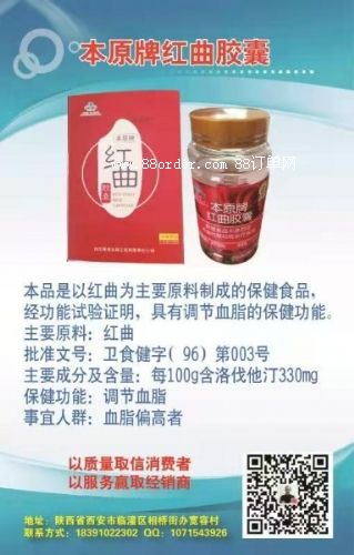 本品是以紅曲為主要原料制成的保健食品,經(jīng)功能試驗(yàn)證明,具有調(diào)節(jié)血脂的保健功能。