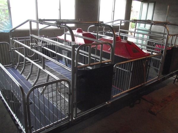 母豬產(chǎn)床,主體采用熱浸鋅管或噴漆管焊接,使其結(jié)構(gòu) 合理,經(jīng)濟(jì)實(shí)惠,質(zhì)量和壽命大幅提高,成為各大規(guī);B(yǎng)豬廠的 ,仔豬塑料地板,母豬球墨鑄鐵地板,扁鋼大梁支撐。含母豬食槽,仔豬圓形補(bǔ)料槽,保溫箱,電熱板。