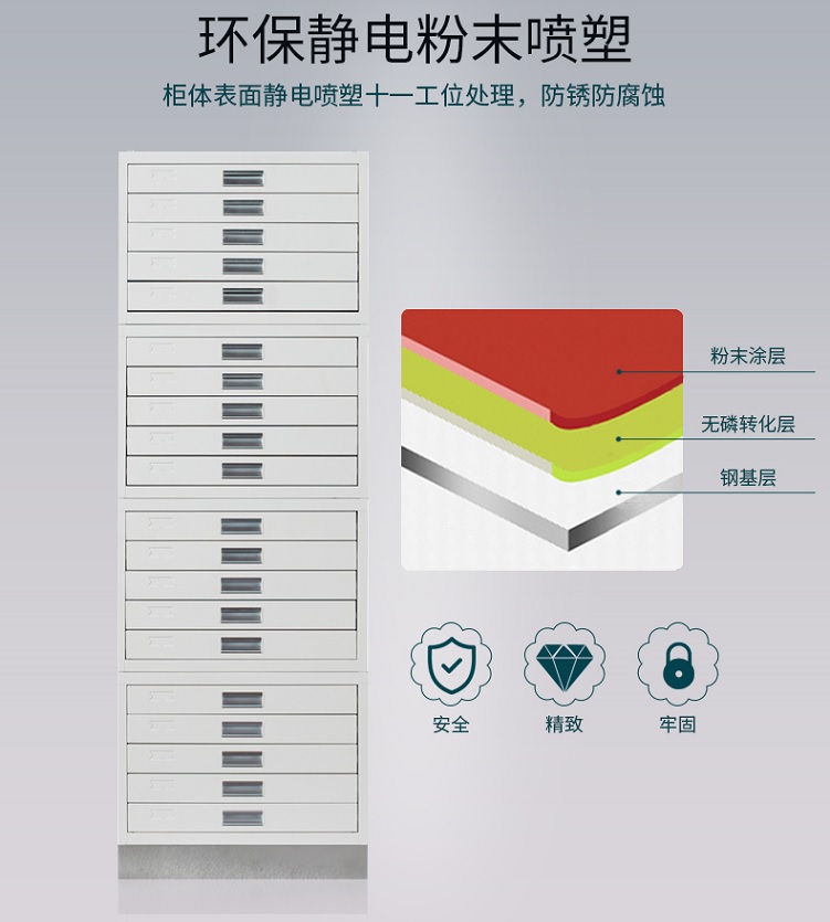 晾片柜主體采用冷軋鋼板制作。表面經(jīng)環(huán)氧樹脂噴涂處理,抗腐蝕抗老化性能。整體結(jié)構(gòu)為組合式,每組18抽。規(guī)格:450*480*1300?纱娣艠藴什A6000張。