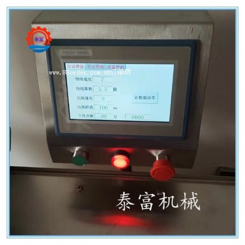 3、香腸線扎機(jī)采用plc程序控制,可簡(jiǎn)單快速地對(duì)生產(chǎn)工藝參數(shù)進(jìn)行設(shè)定。可設(shè)定繞線速度、扎線長(zhǎng)度、調(diào)節(jié)快慢目標(biāo)產(chǎn)量等,生產(chǎn)過(guò)程中會(huì)對(duì)扎線產(chǎn)量進(jìn)行自動(dòng)統(tǒng)計(jì),省去人工點(diǎn)數(shù)的麻煩。操作簡(jiǎn)單方便易懂。