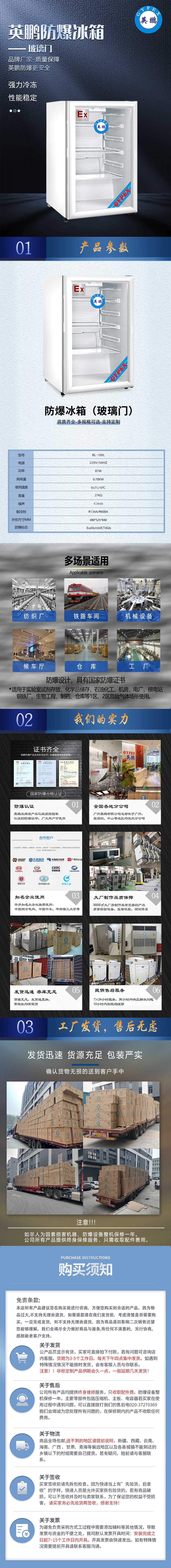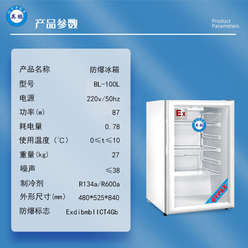 英鵬防爆冰箱BL-100L單玻璃門(mén)防爆冰柜低溫
