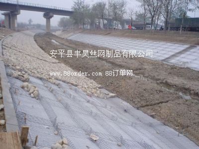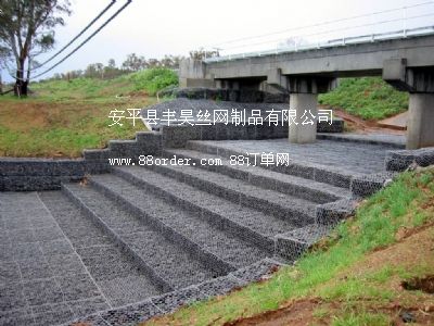 雷諾護墊是厚度在0.17-0.3m的網(wǎng)箱結(jié)構(gòu),在現(xiàn)場用于裝填石頭。主要用作河道、岸坡、路基邊坡護坡結(jié)構(gòu)。既可防止河岸遭水流、風(fēng)浪侵襲而破壞,又實現(xiàn)了水體與坡下土體間的自然對流交換功能,達到生態(tài)平衡。坡上植綠可增添景觀、綠化效果。