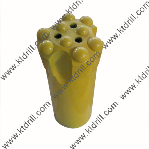 3.錐度聯(lián)接柱齒釬頭 錐度連接柱齒釬頭主要是與風動鑿巖機及錐度桿配套使用的一種鉆頭,通過錐度與釬桿聯(lián)接,進行鑿孔作業(yè),主要應(yīng)用于礦山的二次破碎、錨桿的支護、巷道的掘進等領(lǐng)域。 我公司生產(chǎn)的柱齒鉆頭按iso國際標準設(shè)計。采用對稱結(jié)構(gòu)設(shè)計。具有良好的排粉效果并且破碎能力強,鑿巖速度快。 適用范圍:與天水、沈陽等風動鑿巖機、液壓鉆車等配套使用,適用于煤礦、鐵礦、金礦、銅礦、鉛鋅礦等礦山開采,鐵路、隧道、鐵路、公路等工程施工