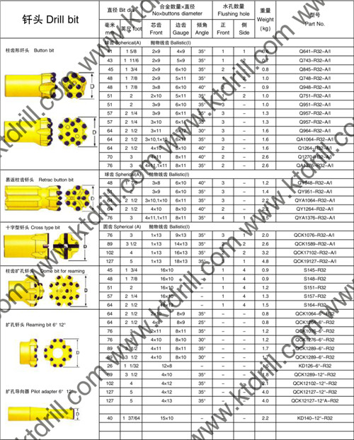釬頭規(guī)格:28、30、32、36、38、40、42、64、76、89等 我公司主要產(chǎn)品有:各種型號的采煤機用鎬形截齒、刀形截齒、掘進機用掘進齒、旋挖鉆機用旋挖齒、一字釬頭、風鉆頭、球齒釬頭、鉆桿釬桿、銑刨機用銑刨齒及各種型號的礦用鉆頭、巖石鉆頭、錨桿鉆頭。我公司產(chǎn)品廣泛用于鐵路、高速公路、隧道、地鐵、煤礦、地礦、冶金、水利等行業(yè),產(chǎn)品暢銷二十多個省、市、自治區(qū),并進入日本、美國、歐洲等國外市場,深受用戶好評。