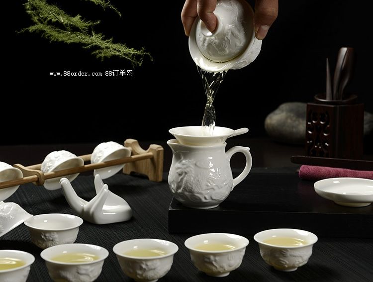 浮雕龍紋泡茶白玉瓷功夫茶具