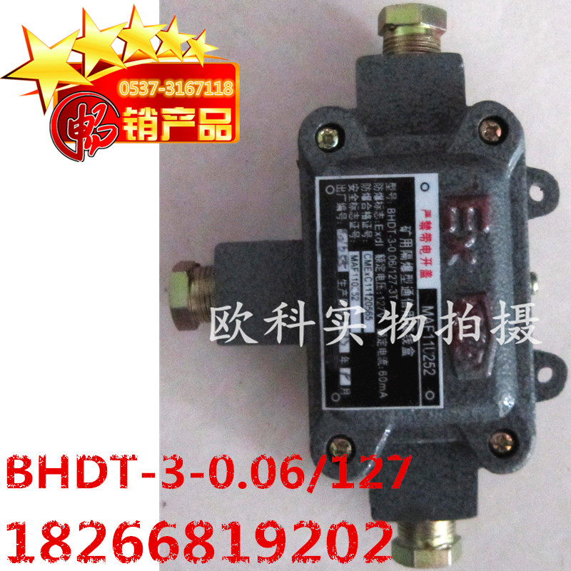 bhdt-3-0.06/127-□t系列接線盒為礦用隔爆型通信用接線盒,適用于煤礦井下有爆炸性混合氣體(甲烷)和煤塵的環(huán)境中做電話電纜的接線和分線之用。