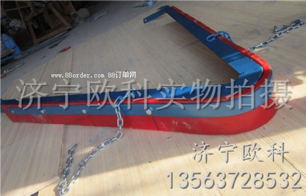 o型空段聚氨酯清掃器在正機安裝時,首先確定好安裝位置,將前吊桿焊在清掃器三角板上,再將橫粱焊在機架上,前吊桿調(diào)正螺絲頂在橫梁上,調(diào)正刮板與膠帶距離,后吊環(huán)角鐵焊在機架槽綱下面,吊著清掃器尾部,自動調(diào)正清掃。