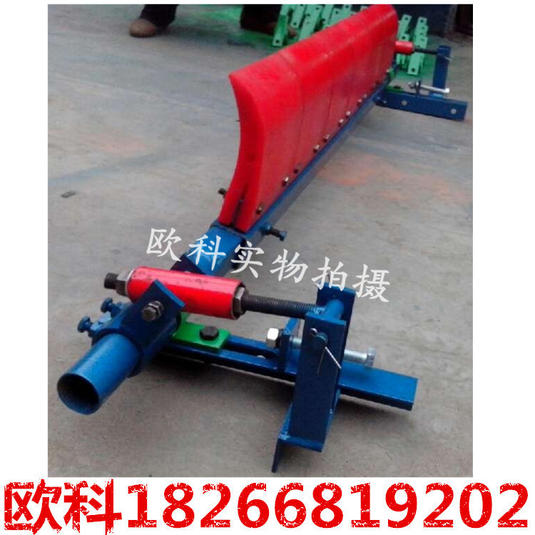 聚氨酯清掃器安裝在頭部滾筒中心線偏下的位置,其板耐磨損、防腐蝕、耐水解,不損傷皮帶,延長皮帶的使用壽命。適用于清掃卸載滾筒處皮帶上粘附的物料,可分雙向頭和單向刀頭 屬于頭道清掃器。
