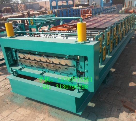 專業(yè)生產(chǎn)828型全自動琉璃瓦機(jī),彩鋼設(shè)備,廠家直銷價(jià)格便宜;各類仿古琉璃瓦,應(yīng)有盡有、質(zhì)量保證;歡迎您前來咨詢仿古琉璃瓦詳細(xì)信息,我們?yōu)槟峁┳顑?yōu)質(zhì)的仿古琉璃瓦和周到的售后服務(wù)。1828型琉璃瓦壓瓦機(jī)分為三部分,輥道成型部分、壓型部分、切刀部分。輥道成型部分是由電機(jī)拖動,鏈條帶動各輥轉(zhuǎn)動。壓型部分是液壓缸帶動模具上下移動,可以把彩鋼壓成許多節(jié),形似琉璃瓦。切刀部分是液壓缸帶動刀具上下移動,可以把彩色鋼瓦切斷。生產(chǎn)過程如下:彩色鋼板進(jìn)入輥道成型部分,成型后到壓型部分,壓成等距離一節(jié)一節(jié)的,切刀負(fù)責(zé)定長切割。萬匯828新型彩鋼琉璃瓦設(shè)備