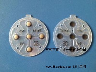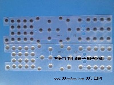 工作原理: 麥拉片位于PCB板上的導(dǎo)電部分上方,當(dāng)按壓按鍵時,按觸點中心下凹,觸點上印刷的導(dǎo)電漿料接觸到PCB上的線路,從而形成回路,整個產(chǎn)品就得以正常工作。