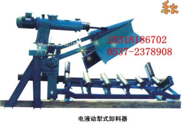 電液動(dòng)雙側(cè)犁式卸料器以電液推桿為動(dòng)力執(zhí)行機(jī)構(gòu),使用多功能電控箱實(shí)現(xiàn)和完成犁刀起落,進(jìn)行卸料。當(dāng)電動(dòng)推桿前進(jìn),帶動(dòng)平行輥筒上升,槽形輥筒變平,支平膠帶,犁刀放下進(jìn)行卸料。當(dāng)電動(dòng)推桿后退,槽形托輥成槽角,平行托輥下降到理論高度,犁頭抬起,處于運(yùn)行狀態(tài),保持物料暢通。經(jīng)使用后均反映本機(jī)具有以下優(yōu)點(diǎn):