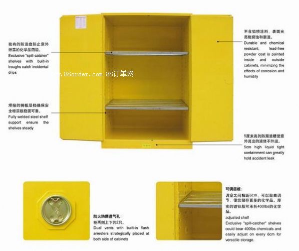 * 柜身底部50mm高的防漏液槽最大可能的防止化學(xué)液體的外溢。