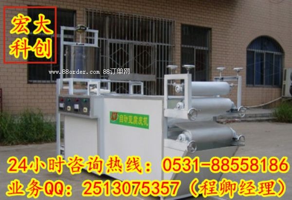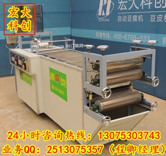 宏大科創(chuàng)豆腐皮機(jī)器采用全自動、全封閉、蒸汽供熱一條龍生產(chǎn),其制成品具有外觀平整、色澤淡黃、鮮艷晶亮、保質(zhì)期長、口感軟筋、易運(yùn)輸?shù)忍攸c(diǎn)。經(jīng)過多年研究,制造出豆腐皮機(jī)組,使豆腐皮生產(chǎn)進(jìn)入工業(yè)化階段。我們的自動豆腐皮機(jī)生產(chǎn)效率高、成本低、寬窄自調(diào)、省時省力;所產(chǎn)產(chǎn)品色澤鮮亮、口感良好、市場口碑好。自動豆腐皮機(jī)(百葉機(jī)、豆腐皮機(jī)、豆腐皮機(jī))生產(chǎn)出來的各種產(chǎn)品,采用獨(dú)特配方可生產(chǎn)五香味、魚味、雞味、麻辣味、孜然味、三鮮味等多種風(fēng)味的豆腐絲、豆腐卷、豆腐干等的風(fēng)味食品。該機(jī)結(jié)構(gòu)緊湊、性能穩(wěn)定、工藝先進(jìn)、操作方便。是實(shí)現(xiàn)大豆深加工轉(zhuǎn)化為經(jīng)濟(jì)優(yōu)勢的理想機(jī)之一。如果您有什么想要詳細(xì)咨詢了解的可以加我們的在線客服qq:2513075357或者打我們下方的咨詢電話:0531-88558186或13075303743與我們聯(lián)系。歡迎廣大客戶來宏大科創(chuàng)參觀學(xué)習(xí)!