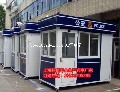 分為小型治安崗?fù)ず痛笮椭伟矋復(fù)。小型治安崗(fù)っ娣e一般2-8m2不等;大型治安崗?fù)っ娣e8-25m2不等。小型治安崗?fù)ひ话銥閳A型或六邊型;大型治安崗?fù)榧b箱式崗?fù)ぁ?