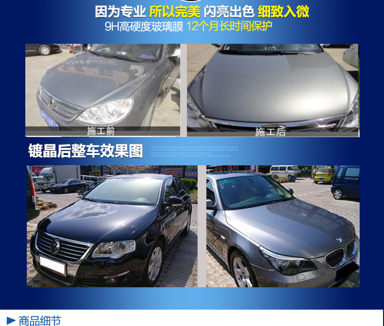 1提高漆面硬度:鍍膜施工后會在車漆表面形成堅硬的非有(玻璃晶體)膜層,與車漆緊密結(jié)合,永不脫落。令車漆不易被劃傷。