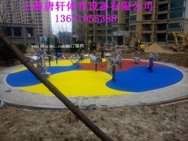 2、機(jī)械鋪設(shè)底層8mm厚, 單組份膠粘劑+橡膠顆粒