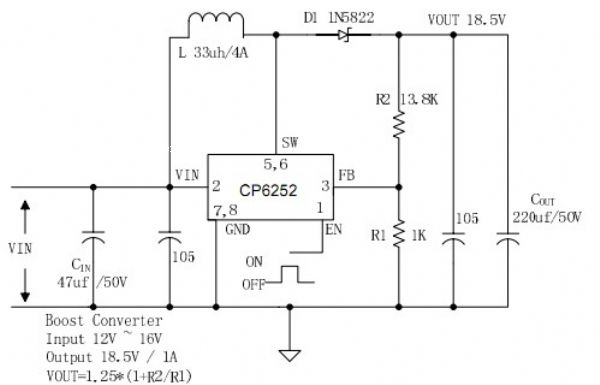 芯能偉業(yè)科技新推出的一款高效率、直流升壓穩(wěn)壓電路cp6252。輸入電壓范圍可由最低3.7伏特到最高42伏特,輸出電壓5--42v可調(diào)整且內(nèi)部mos輸出開關(guān)電流可高達(dá)2a,非常適合于數(shù)碼便攜產(chǎn)品電池供電,3g網(wǎng)絡(luò)產(chǎn)品,數(shù)碼相機(jī),lcd液晶屏背光電路,太陽能照明路燈,網(wǎng)絡(luò)通訊等產(chǎn)品的電壓轉(zhuǎn)換。