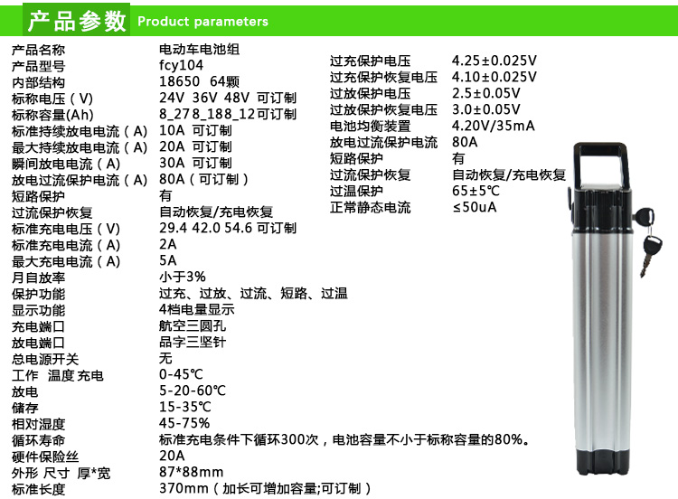 飛暢源銀魚系列電動(dòng)車鋰電池為您的電動(dòng)車提供超長(zhǎng)續(xù)航能力與安全穩(wěn)定性,循環(huán)壽命300-500次。整個(gè)電池額定容量10000(amh),如此大能量電池卻僅重5kg,可以輕松拆卸帶回家充電,即便是女生也可輕松提動(dòng)。過充、過放、過流、短路、過溫的保護(hù)功能,為您提供更安全的保障。