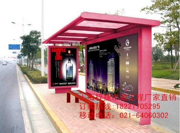 不銹鋼板或鍍鋅板是候車亭最主要的材料,也有采用鋁型材的,但比較少見。其他主要材料還有pc耐力板、鋼化玻璃,用在燈箱兩面,就是廣告畫面外面透明的那層板;鋁塑板,用在頂棚的下面,就是抬頭看到的那部分;鍍鋅板,一般用在頂棚上面和燈箱的主框。