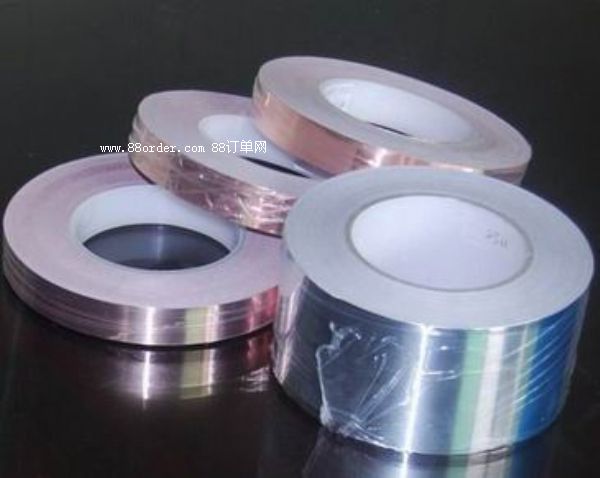 雙導(dǎo)銅箔;基材:銅箔,傳導(dǎo)壓克力膠,粘性好,附著力強(qiáng)。性能:具有保溫,隔熱,防水,粘力佳,耐寒性好,易撕,可消除電磁干擾(emi),隔離電磁波對(duì)人體的危害,避免電壓或電流影響功能,主要用于電腦顯示器電腦周邊線材與變壓器制造中央空調(diào)管線,抽煙機(jī),冰箱,熱水器等的管線接縫,精密電子產(chǎn)品、電腦設(shè)備、電線、電纜等;高頻傳輸時(shí),隔離電磁波干擾,耐高溫防止自燃,規(guī)格:(0.018mm-0.095mm)各種厚度,寬度可任意分切。